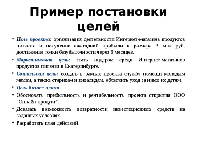 Основные цели проекта